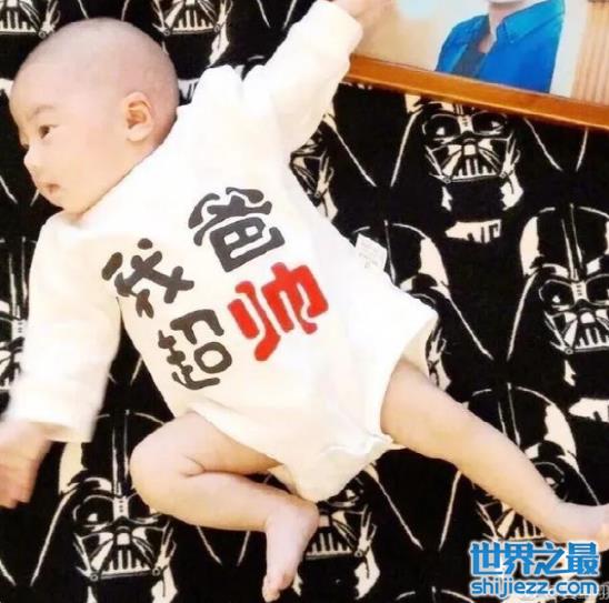 虽然没有晒妻子的照片,但贺军翔还是晒出了自己女儿美宝的照片,还穿着”我爸超帅“的衣服搞怪耍宝。
