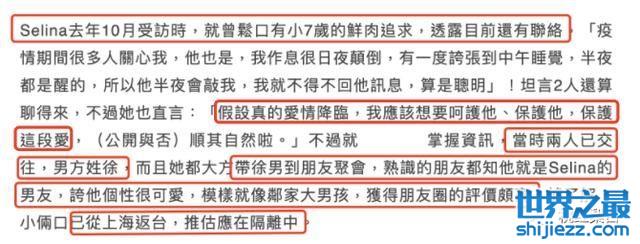现任男友是圈外人,作息时间和她差不多,整体符合Selina之前的要求。