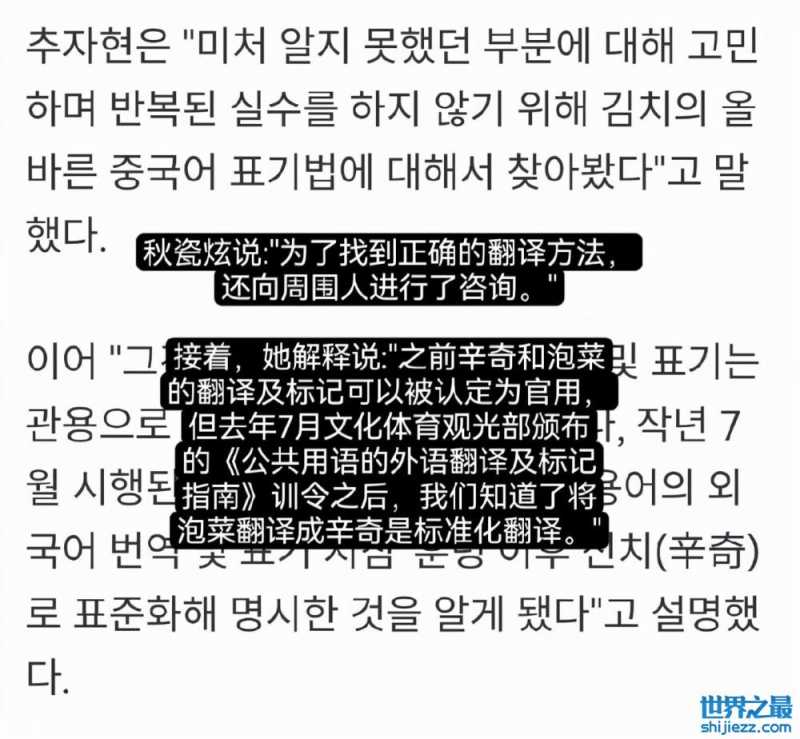 从秋瓷炫这一段视频来讲,这完全是没有问题的,但这段视频传到韩国网络后,让坚称辣白菜中文名应为“辛奇”的韩国网民大为不满,纷纷发文指责秋瓷炫。