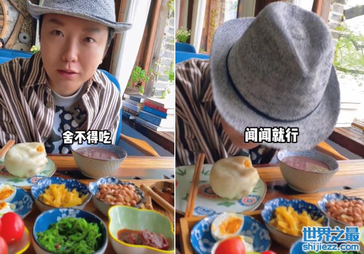 说是吃早餐,但除了面前的包子被咬了一口之外,李玉刚其他的菜品全都没动,而是一直在闻。工作人员问李玉刚为什么一口都不动,他回答说没吃过这么丰盛的早餐,舍不得吃,闻一闻就行。这委屈的小表情,让人感觉平时工作人员没少“虐待”他。