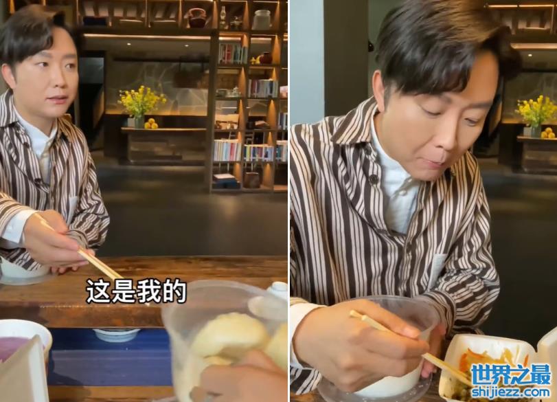 作为吃货的李玉刚平时没少分享自己的吃饭日常,画面又搞笑又让人心疼。在大家吃着各种各样的菜时,李玉刚只能在一旁拿着饭盒盖子吃饭,饭和菜的量更是少得可怜,他却乐在其中,显得很满足。看来不用吃咸菜,什么都很香。