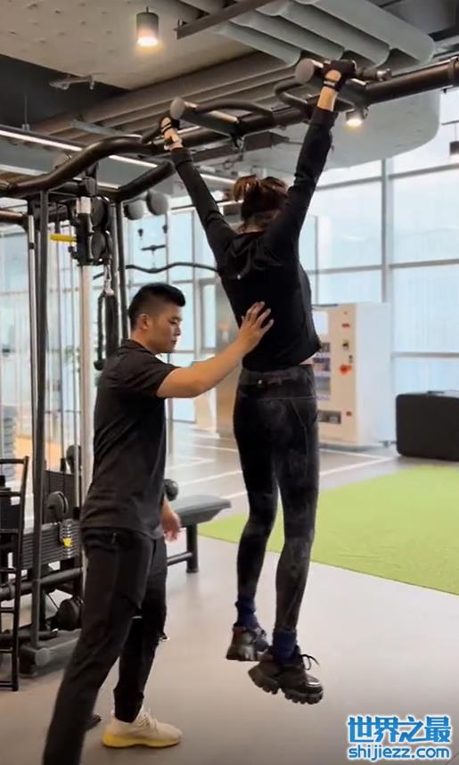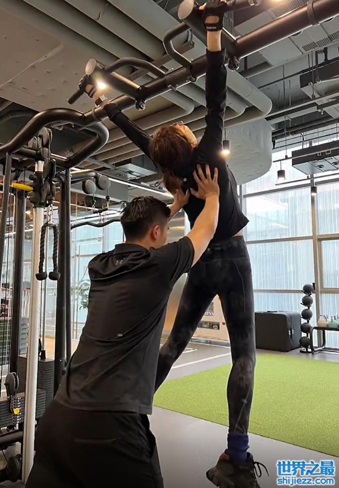 从牛莉的动作和身材都能够感受出来,她应该是长期保持健身的运动达人,整个人吊在铁架子上被教练推着背部拉伸时,她表现得也是轻松又自如,完全感受不出来她有丝毫的困难。