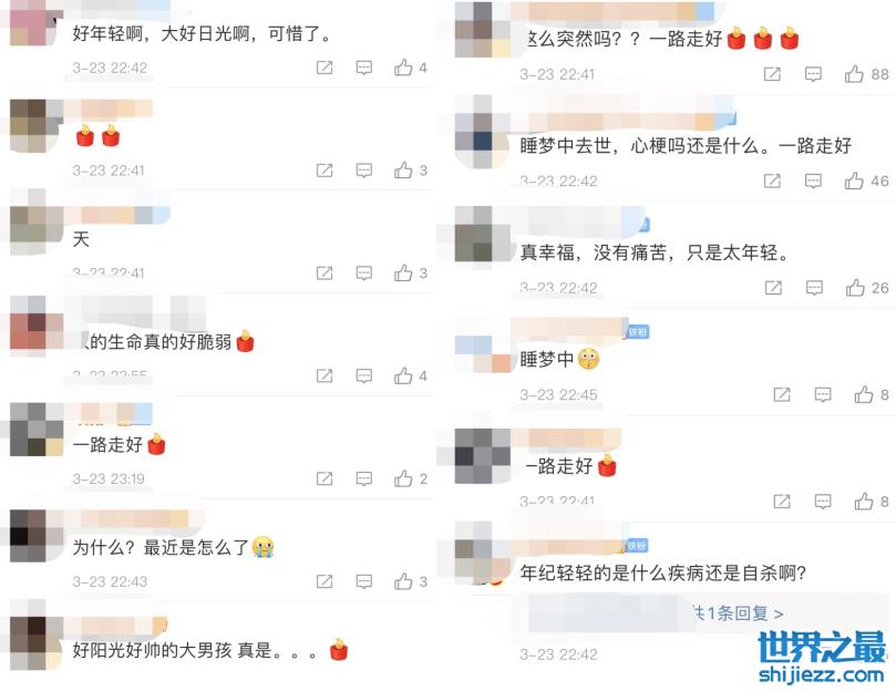 在得知这一消息后,网友们都感到分外惋惜,纷纷在评论区祝福道一路走好,也有人说道太年轻了,正是大好的时光,可惜了。还有网友说在睡梦中去世太突然了,同时也送上了自己的祝福,而经过这一段时间发生的事,网友也感慨道人的生命实在是太脆弱了。