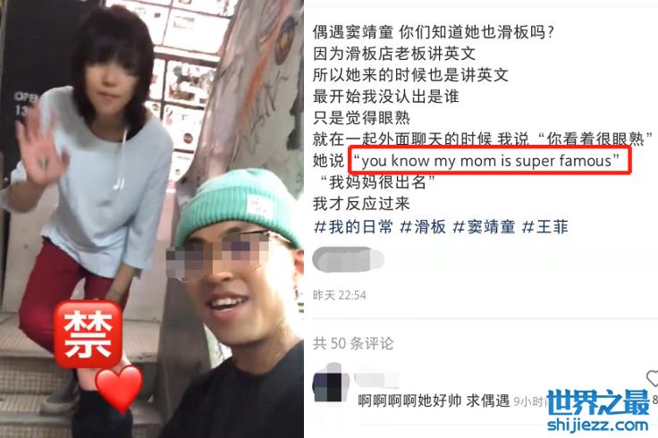 近日,有网友在某社交平台分享了一条视频,他向大家炫耀自己偶遇了窦靖童。一开始时该网友只是觉得窦靖童眼熟,在聊天时窦靖童说“我妈妈很出名”,这名网友才反应过来。从这话可以看得出窦靖童很自豪有王菲这样的妈妈,言辞间满是炫耀的意味。