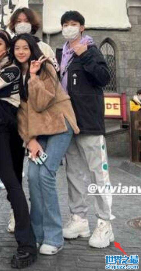 从这张图来看,王文也穿着平底小白鞋,她男友穿着白色内增高,外增高的鞋子,还特意挺腰,能显得高一些。王文也则是非常配合的,半蹲下来配合男友的身高,这样看来,王文也和男友身高极有可能是差不多高。