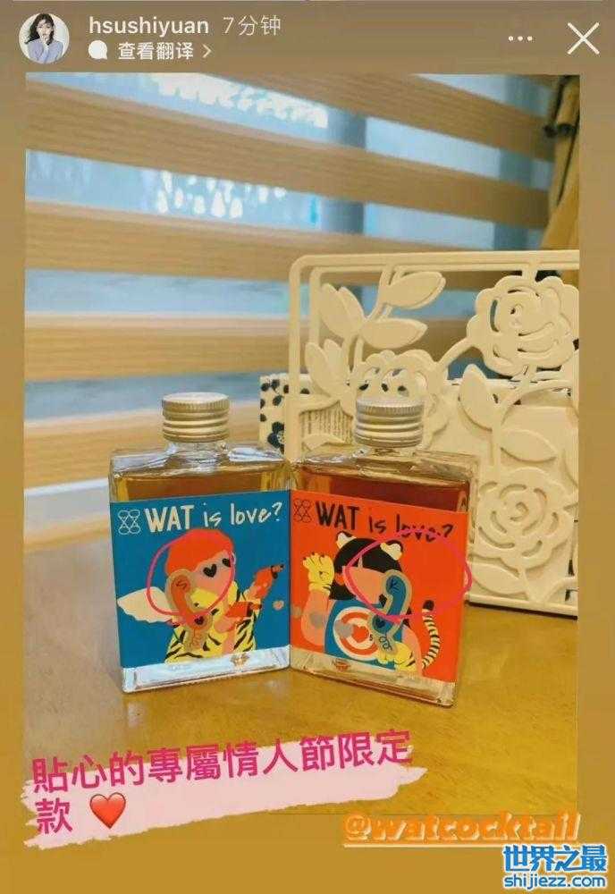 大S在社交平台上更新动态,图中有两瓶酒,并配文案,“情人节专属限定款”,眼尖的网友发现,在酒的包装上面,有S和K的字母,S自然是代表大S,K是具俊晔所在组合酷龙首字母,看来她这是在暗戳戳地秀恩爱啊。
