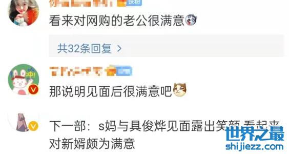 网友们看到这里,都觉得大S与具俊晔见面后很满意,还有人预言,“下一部是S妈与具俊晔见面,露出笑颜,看起来对新女婿颇为满意”。