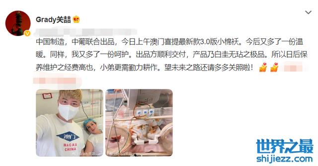 近日,歌手关喆在自己的社交平台上公布了自己三胎得女的喜讯,他发文说道自己的喜提最新款的3.0版小棉袄,今后又多了一份温暖,自己也多了一份呵护,并且说到之后会对妻子孩子更加关怀备至,未来之路还请多多关照。