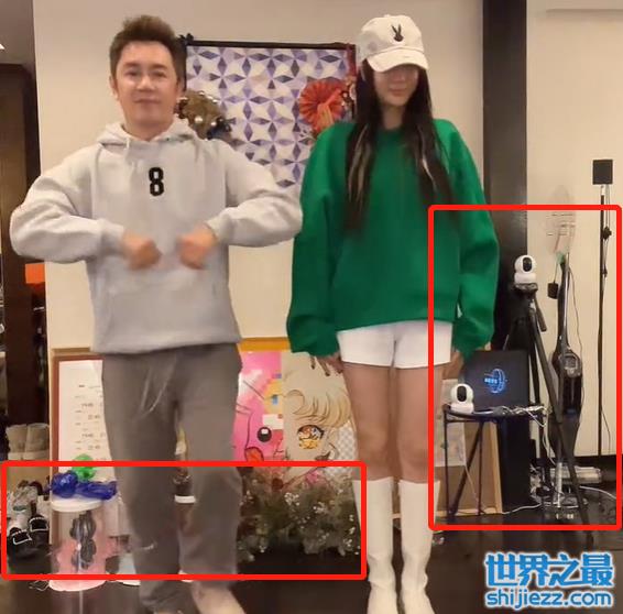在陈浩明与蒋丽莎的身后我们能看到,他们家的地上摆着一堆杂物,玩偶、鞋子堆满一地。在蒋丽莎身后还有两个监控摄像头,不知道是用来照看孩子还是宠物。所有的东西堆在一起,杂乱中又透露出一丝有序,陈浩明夫妻二人在这之中跳得津津有味,看来已经习惯了。