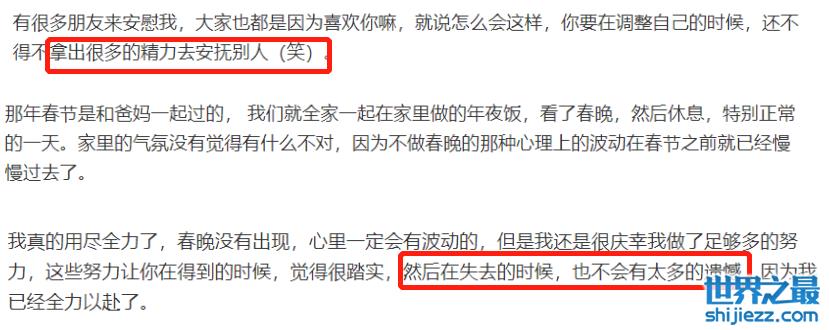 在后来接受采访时董卿谈到了没有上春晚的感受,她说当时很多朋友都很关心她,所以她还不得不拿出很多精力去安慰别人。对于不上春晚这件事董卿也看得特别开,称庆幸自己做了足够多的努力,这样在失去的时候,也没有太多遗憾。