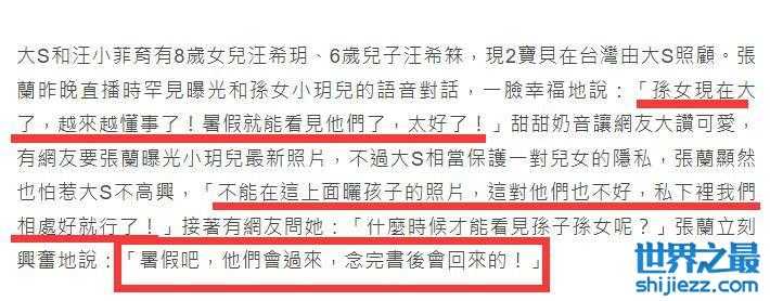 之后,张兰又自曝,暑假他们就会过来,念完书就会回来的。不过“他们”应该仅仅只包括孙子和孙女,大S应该不会一起回来。