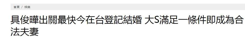 只要是大S不在乎妈妈的感受,具俊晔和她就可以直接进入到下一步的登记结婚进程之中,并且台媒做出推断,他们一定是马上会结婚的。