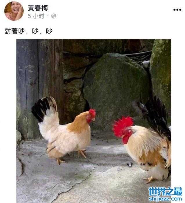 大S的妈妈配图又是几只公鸡和母鸡的图片,和前面两次的情况一模一样。