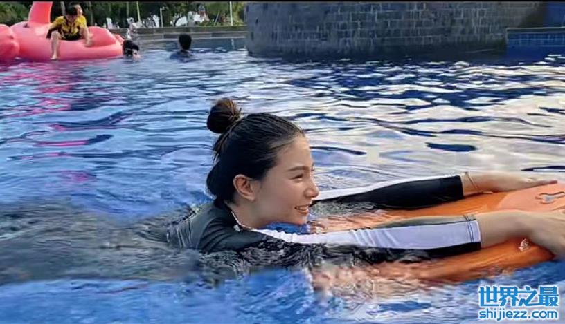 不仅如此,何姿还自己泡在水里嬉戏,看起来超级开心。泡在水里展现超好身材,不愧是奥运冠军,身材保持得很好。
