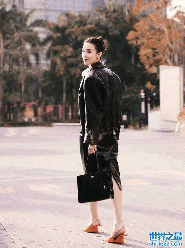 穿着2022最新的秋冬系列黑皮衣,虽然无论从轮廓还是厚度上,这一件都很有分量感,但用下身柔软的皮裙和露出的小腿,一秒就平衡整体厚薄指数,非常适合现在这个天气穿。
