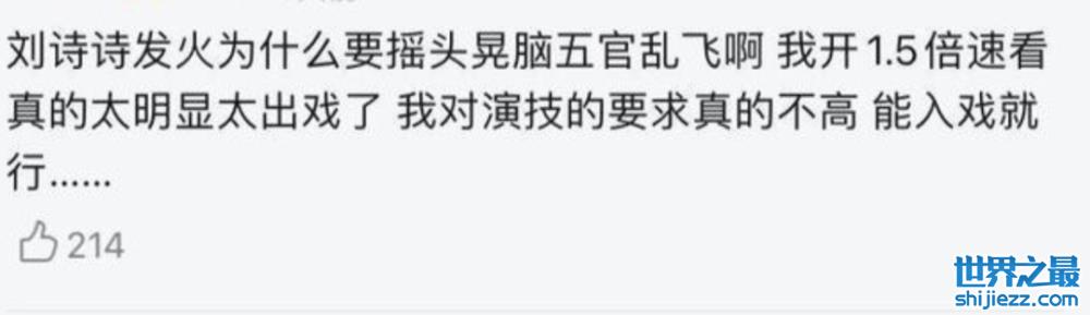 还有网友称自己对演技的要求不高,只要能入戏就行,但刘诗诗在剧中一发火就摇头晃脑,实在是出戏。