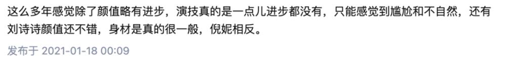 但近些年,刘诗诗的演技也遭到了吐槽。