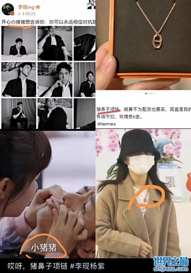 另外,在《亲爱的热爱的》剧中,佟年酒后甜蜜称呼韩商言小猪猪,而现实中杨紫拥有一条猪鼻子项链,也多次佩戴出镜,李现在现实中也称呼自己为猪猪。