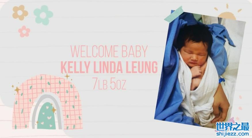 钟嘉欣的头胎女儿Kelly出生时十分可爱,长得极好,足足有6斤多。一头头发长得很是茂密,紧闭着眼睛和妈妈长得极其相似。