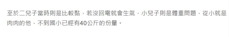 作为演员的罗时丰一共有三个孩子,这次出车祸的是最小的三儿子。三个儿子都各有特点,大儿子很调皮,二儿子就很黏人,要是不回电话就会很生气,小儿子则是从小就很胖,体重是个老问题。