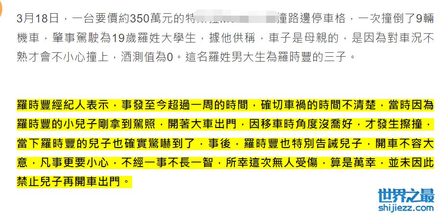 19岁星二代罗少宏出车祸!开豪车连撞9辆摩托,父母称将花钱赔偿 ...