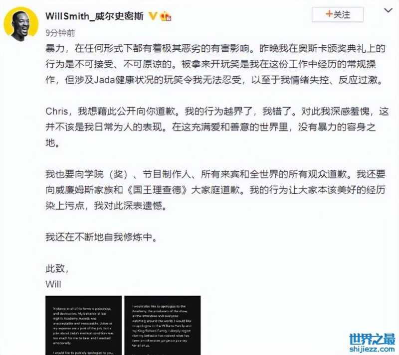 威尔史密斯已经对自己在奥斯卡现场打人的行为做出了道歉,但此事后续的发酵力度有增不减。