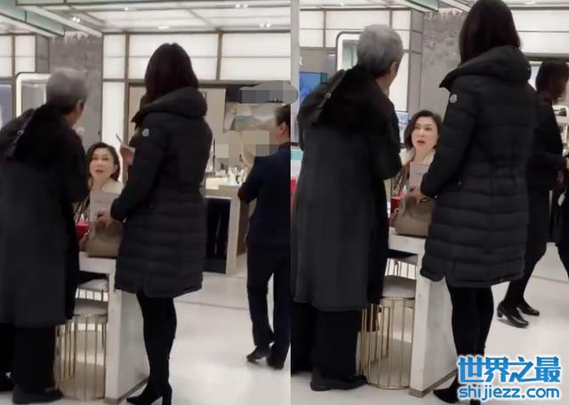 当天关之琳正在一家护肤品专柜购买商品,她坐在柜台前与两位女士说着话,从这两位女士的穿着打扮来看,感觉不像是工作人员,不知道是不是关之琳自己的亲人或朋友。虽然没能看到关之琳的全身打扮,但从她的发型来看,她将自己收拾得十分精致。