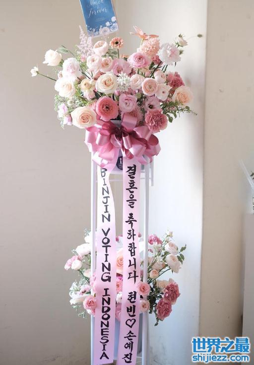 各种贺卡与鲜花,还有粉丝们精心制作的花篮,总之两家粉丝们都在等待着他们新婚典礼的举行,并且已经迫不及待了。还有一些粉丝们将自己准备的礼物一件一件地放在媒体平台上面,将自己最好的祝福带给这一对新人。