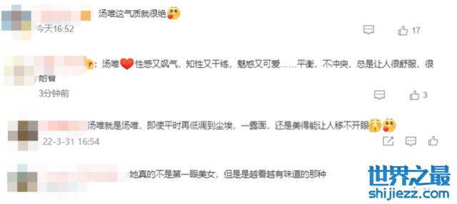 也难怪照片一经发出,网友就纷纷留言,说到汤唯真是性感又飒气,知性又干练,魅惑又可爱,并且之间并不冲突反而是有一种让人舒服的平衡感。还有网友说到汤唯即使平时再低调,一露面还是美得让人移不开眼。