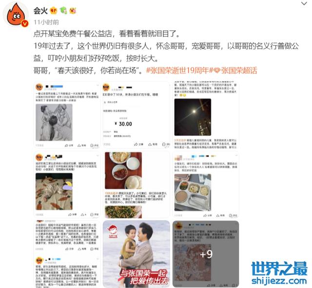 除了各路明星好友,张国荣也是许多人的偶像,在点开某午餐公益店就会发现许多人选择在这一天以张国荣的名义行善做公益,19年过去,仍然有许多的人怀念张国荣,宠爱张国荣。