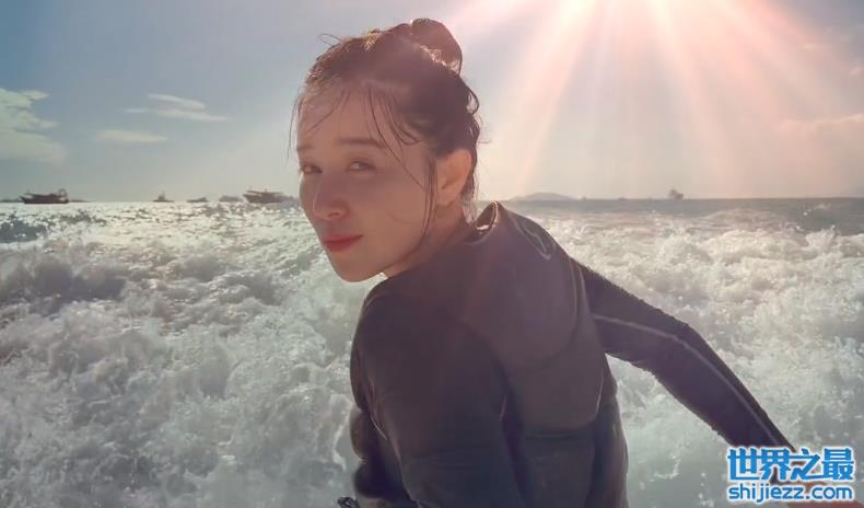 不仅仅有开豪车出现,阚清子还自己划水冲浪。站在冲浪板上,身上穿着冲浪服,头发都被海水打湿了,身后就是茫茫大海。阚清子回头对着镜头笑,看起来很是幸福。阳光洒在头顶,泡在水里,这看起来可真好玩。