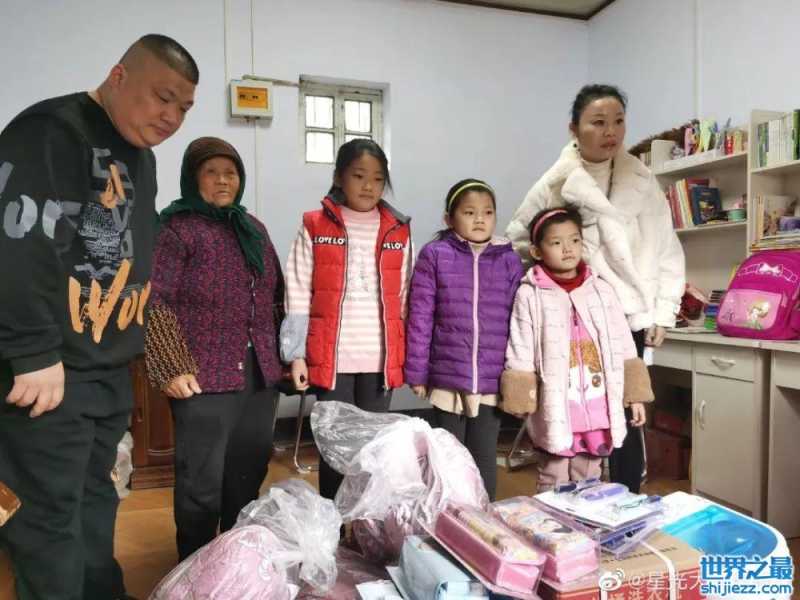 过年的时候,草帽姐又给家乡的小孩子送生活费和各种学习用具,生活用品等等。