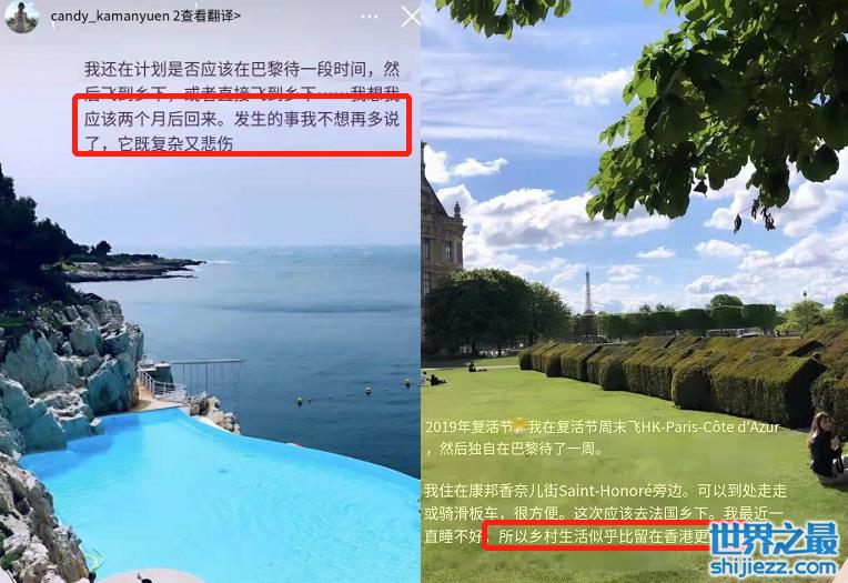 此前,袁嘉敏还在社交平台上晒出了自己离开居住地、去往外国的动态。袁嘉敏配文称“应该两个月后回来,发生的事我不想再多说了,它既复杂又悲伤”,还说自己近期一直睡不好,所以觉得在外国乡村比留在原居住地好。从袁嘉敏的言语中能看出,她被钟家父子的事件伤害得很深。