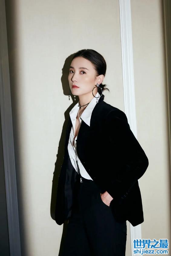 平时出席活动的宋佳也会经常选择一些西装搭配,白色衬衫内搭领口大开,扎进裤子里突出高腰线,再搭配低马尾和夸张的耳饰,酷飒干练又带有点小性感,让人看来有一种有距离的美。