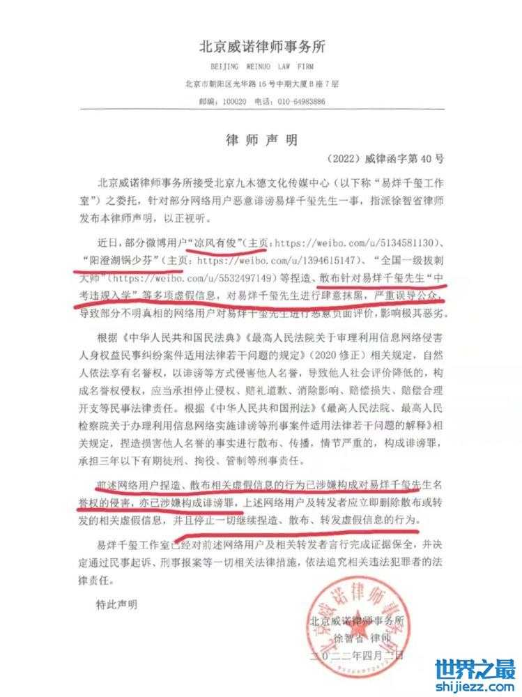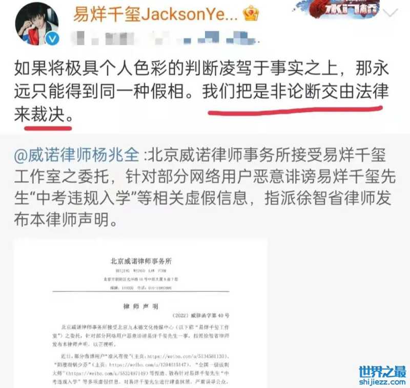 针对易烊千玺涉嫌中考违规的谣言,工作室绝不容忍,发文回应,“我们把是非论断交由法律来裁决”。