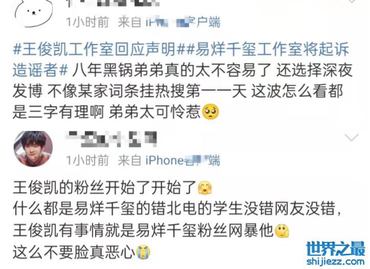 易烊千玺中考违规的谣言,一时间传得沸沸扬扬,有人说这些谣言,是王俊凯粉丝挑起来的,然后很多易烊千玺的粉丝就去抹黑王俊凯,之后,王俊凯工作室发文回应,将用法律手段追究到底。那句“被当做他人的公共挡箭牌”,有网友觉得这话,疑似是内涵易烊千玺。