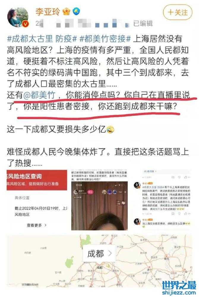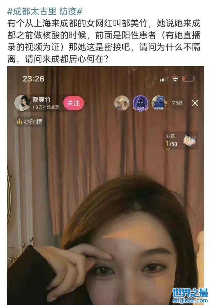 网红都美竹已经到达成都,而她前几天还在上海,大家都知道上海的疫情有多严重,都美竹从上海突然来到成都,引起了很多成都人民的担忧。