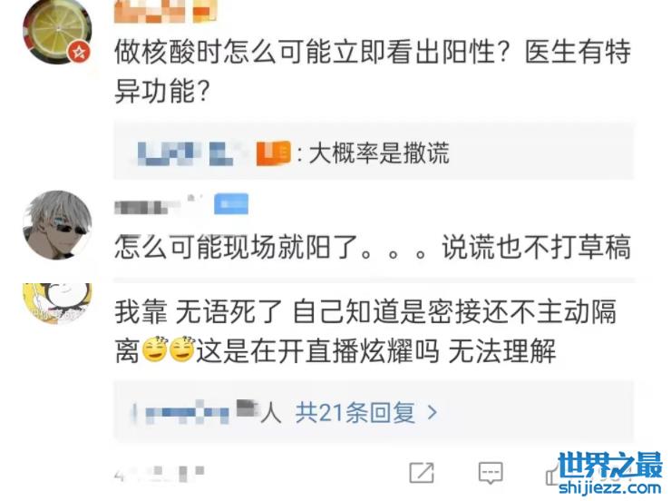 对此,网友们都“炸开了锅”,有人认为,按都美竹的说法,那她就是密接啊。还有人评论道,“怎么可能现场就阳了,说谎不打草稿”,也有人一针见血地回复,“大概率是撒谎”。