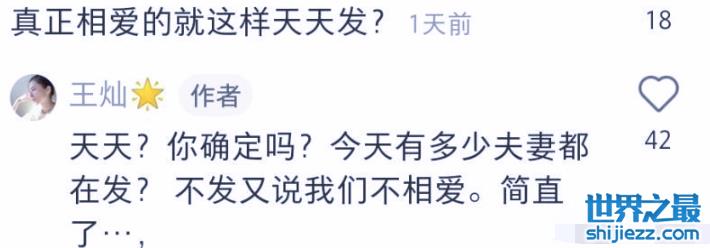 不过也有一些恶意的评论针对王灿,认为王灿这样秀恩爱,其实并不是真正的恩爱,只是做做样子罢了。而王灿直接下场,亲自回怼恶评,表示自己没有天天发照片,而且情人节当天有很多夫妻都在发照片,不发的话又说与老公不相爱,发了又被说作秀,非常无奈。