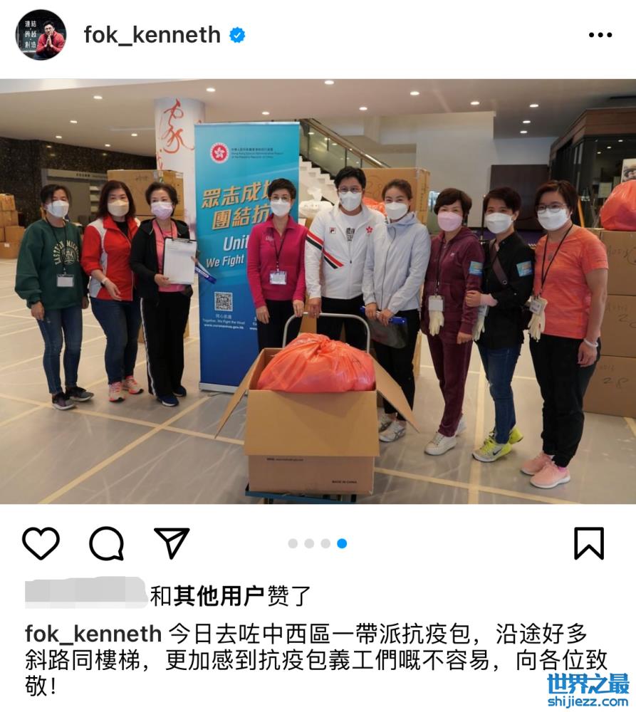 近日,霍启刚在自己的社交平台上发布与妻子郭晶晶一同参加防疫物资分发去做义工的照片,夫妻二人与一直奋战在一线的志愿者们留下合影,并且霍启刚也感慨道亲自去派发抗疫包后才知道义工们的艰辛,向所有人致敬。