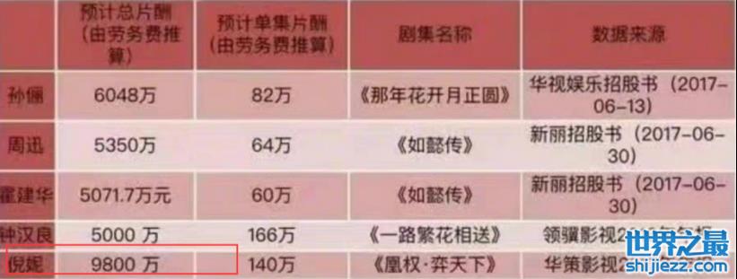 除此之外,倪妮拍《天盛长歌》的片酬被爆是9800万,当时粉丝还说是两部剧打包的片酬价格,是加上了仙侠剧《宸汐缘》的片酬。