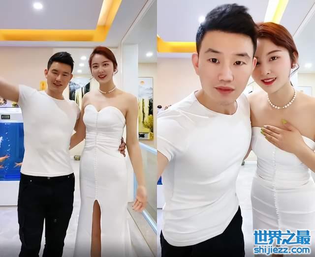 两口子对镜比心满脸甜蜜笑容,互相揽腰动作尽显亲密。不过或许是女方穿了高跟鞋的缘故,两人并肩站在一块,郭珊珊看起来比谢孟伟高了小半截。