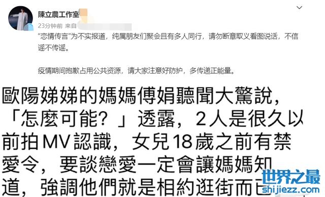 目前双方均已做出回应,陈立农方称当天有多人聚会。欧阳娣娣的妈妈傅娟也说两人就是朋友,欧阳娣娣有18岁前“禁爱令”。