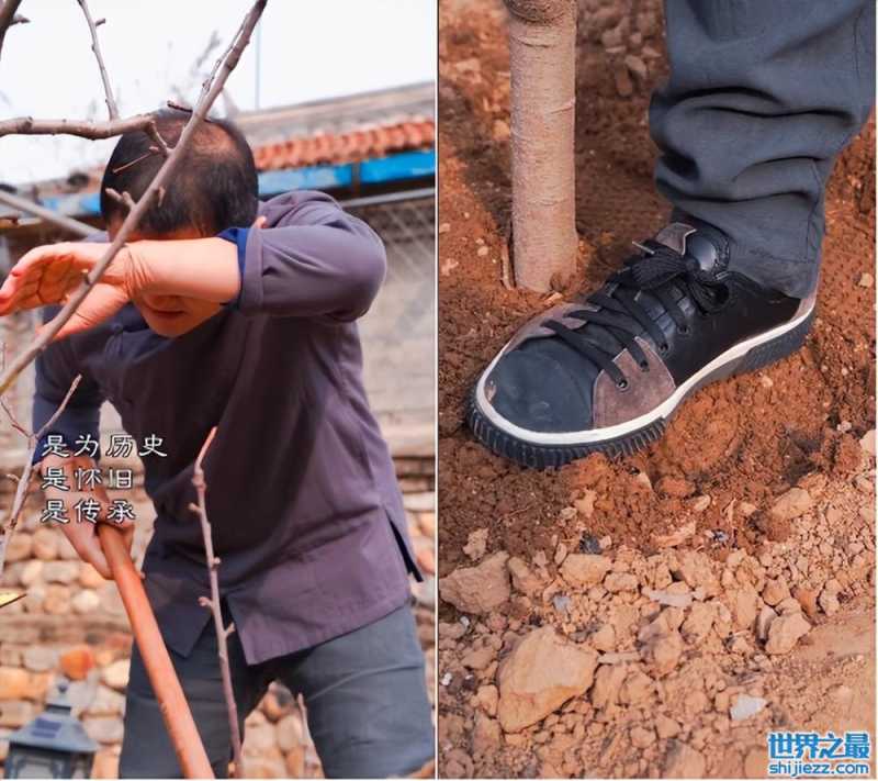 但是挖土是个力气活,李亚鹏不一会便满头大汗,不停地拿袖子擦汗,眉头紧皱,看起来挖土很吃力。把树放进去之后,李亚鹏更是直接站在了土上,用鞋子把土压实,不在乎脚上的泥土,一点也不怕脏。