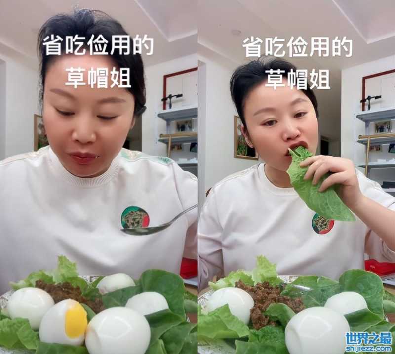 不仅如此,此前还晒出自己只吃鸡蛋蘸酱的视频。只见草帽姐一口一个鸡蛋,随后便用筷子加点酱合着吃。鸡蛋吃完之后,鸡蛋下面垫着的青菜也没有浪费,朝地下甩了几下之后,便直接塞到嘴里吃了起来,真是勤俭持家,一点也不浪费。
