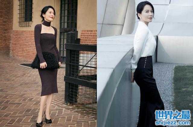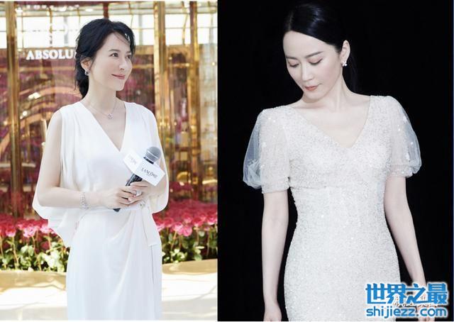 除了不规则,还可以选择俞飞鸿这种挖肩、泡泡袖连衣裙,通过露肩和拉宽肩部来打造头肩比,一样很适合窄肩星人。