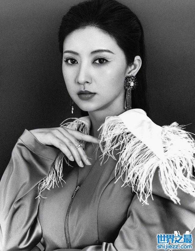 而且她本身就是大气的五官脸型,这种夸张一点的羽毛垫肩也完全撑得起来。