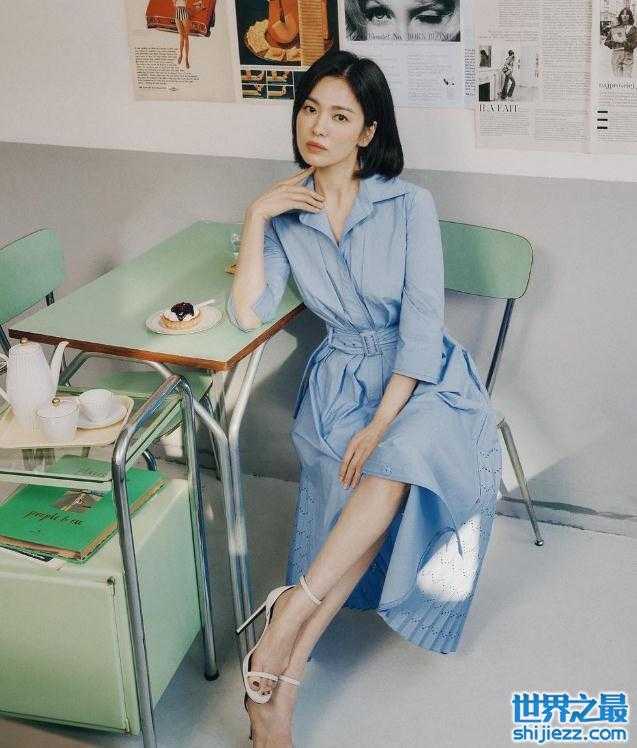 从整个夏秋款的衣服拍摄来看,不管什么造型,在宋慧乔的扮装之下显得非常有个人的魅力。尤其是一款天蓝色的风衣设计,整个长裙的打分肯定是成了未来时尚的新风向标。另外一种绿瓷色的搭配配合着白色的裙子完全不显胖。