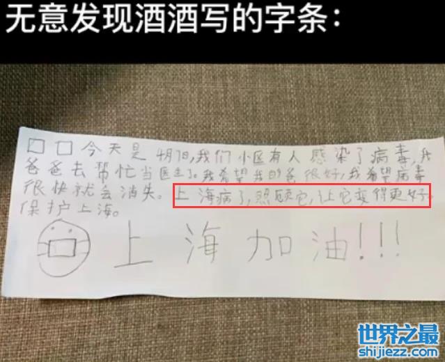 章龄之还公开了孩子为上海疫情所写的加油纸条,直言爸爸去帮忙当医生了,我希望我的爸爸很好,我希望病毒很快就消失,上海病了照顾“它”,让“它”变得更好,上海加油。