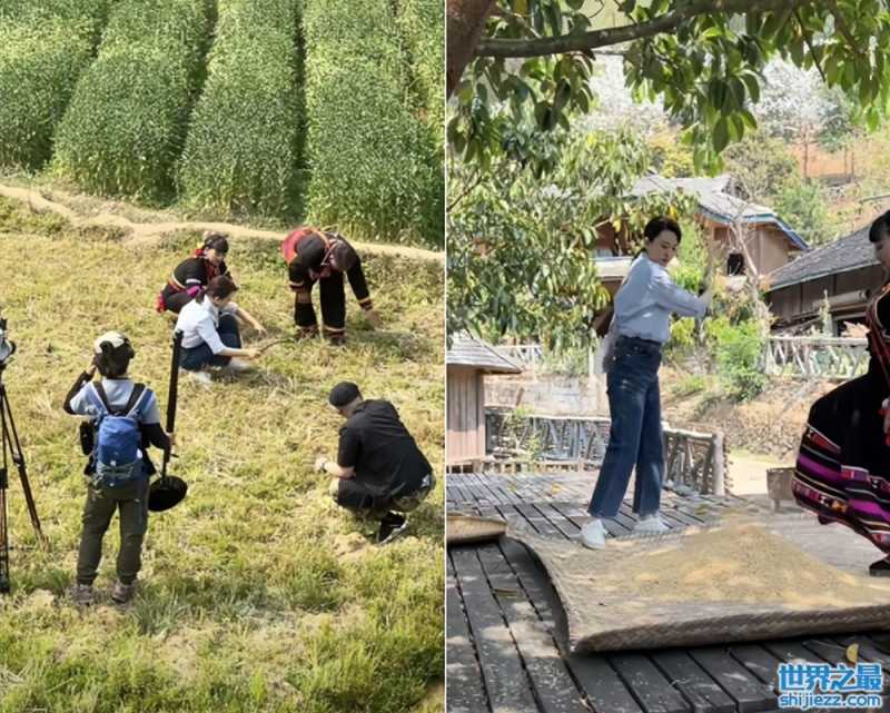 从张蕾晒出的视频中可以看到,张蕾十分融入当地的生活,她和当地的农民们一起在烈日中下地干活,忙出一身汗也不嫌累,之后还帮着一起处理收获的谷物,张蕾用力扇扇子的样子看起来还挺专业,得到了一起干活的大婶的夸奖。